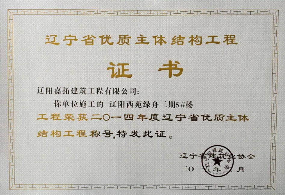 2014年度遼寧省優(yōu)質(zhì)主體結(jié)構(gòu)工程